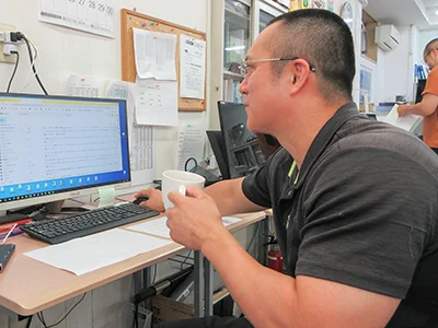 まずはメールチェック等の事務作業から。本日の仕事の流れを組み立てます。